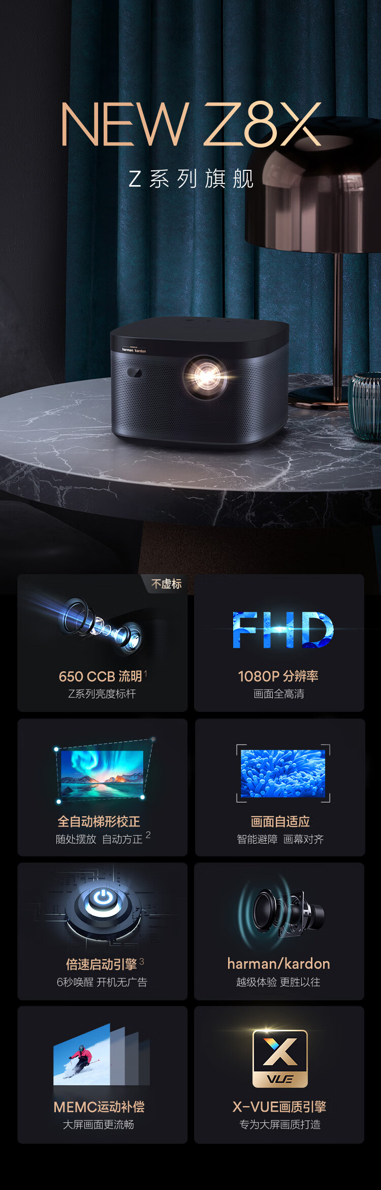 极米NEW Z8X 投影仪家用 投影机 智能家庭影院(真实高亮 哈曼卡顿原装音响 全自动梯形校正)